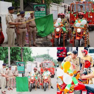 बुलन्दशहर। उ0प्र0 शासन द्वारा जनपद बुलंदशहर में अग्निशमन/अग्नि सुरक्षा व्यवस्थाओं को मजबूती प्रदान किए जाने हेतु 1 फायर टेंडर व 2 फायर बुलैट की सौगात दी है। अब फायर बुलैट की सहायता से अग्निशमन विभाग चलते चलते भी फायर फाइटिंग कर सकेगा। अग्निशमन विभाग को मिले उक्त वाहनों को वरिष्ठ पुलिस अधीक्षक श्लोक कुमार द्वारा हरी झंडी दिखा कर रवाना किया गया।