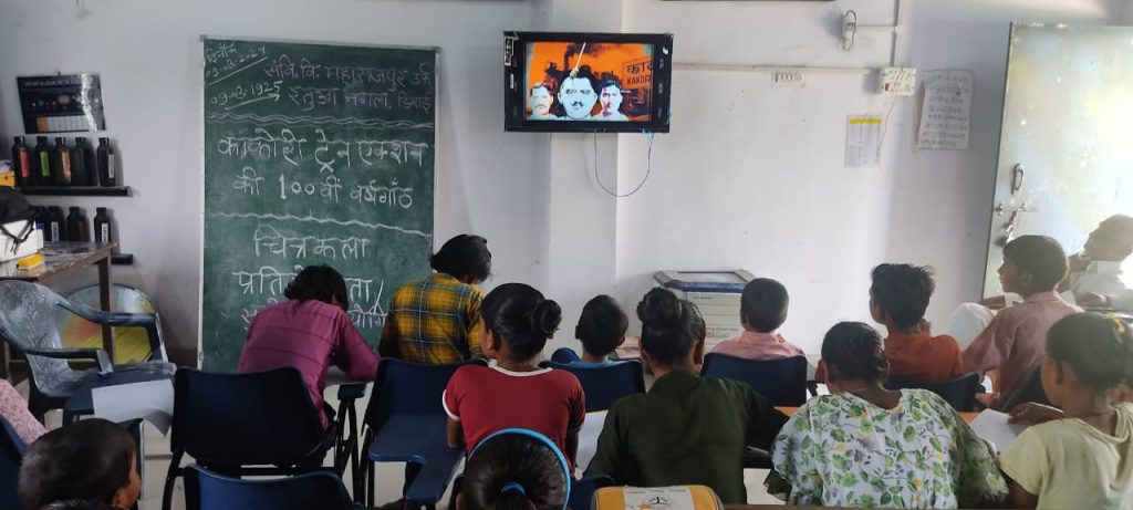 क्रमशः प्रथम, द्वितीय , तृतीय आने वाले बच्चों को शिक्षा उपयोगी सामग्री वितरित की। तत्पश्चात बच्चों को टीवी पर काकोरी ट्रेन एक्शन से संबंधित छाया चित्र और फिल्म भी दिखाई गई।
