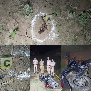 सएसपी श्लोक कुमार ने बताया कि शुक्रवार रात जनपद में वांछित अपराधियों की तलाश में चलाये जा रहे अभियान के तहत थाना रामघाट पुलिस टीम व स्वाट टीम रामघाट देहात में गंगनहर पुल पर संदिग्ध वाहन और लोगों की चेकिंग कर रही थी। ग्राम नगला जाटनी की तरफ से पुलिस को एक बाइक पर सवार दो संदिग्ध व्यक्ति आते हुए दिखाई दिए। पुलिस ने इन्हें रूकने का इशारा किया तो दोनों बाइक को तेजी से नहर की पटरी की तरफ मोड़कर भागने लगे। पुलिस ने बदमाशों का पीछा किया तो कुछ दूरी पर इनकी बाइक अनियंत्रित होकर फिसलकर गिर गई। इस पर पुलिस टीम ने बदमाशों को घेर लिया और आत्मसमर्पण करने लिए कहा लेकिन बदमाशों ने पुलिस टीम पर फायर कर दिया। पुलिस की जवाबी फायरिंग में एक बदमाश गोली लगने से घायल हो गया।