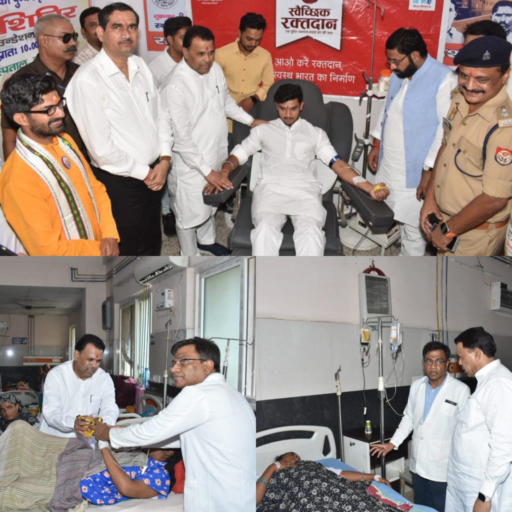 बुलंदशहर। उत्तर प्रदेश सरकार के राज्यमंत्री नरेन्द्र कश्यप ने जिला अस्पताल में ब्लड बैंक में आयोजित रक्तदान शिविर का फीता काटकर शुभारम्भ किया। इस मौके पर रक्तदाताओ से भी वार्ता की।