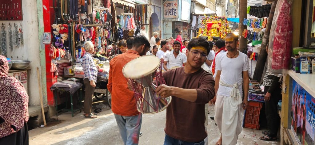शोभायात्रा का भव्य स्वागत – पुष्पवर्षा और जयघोष