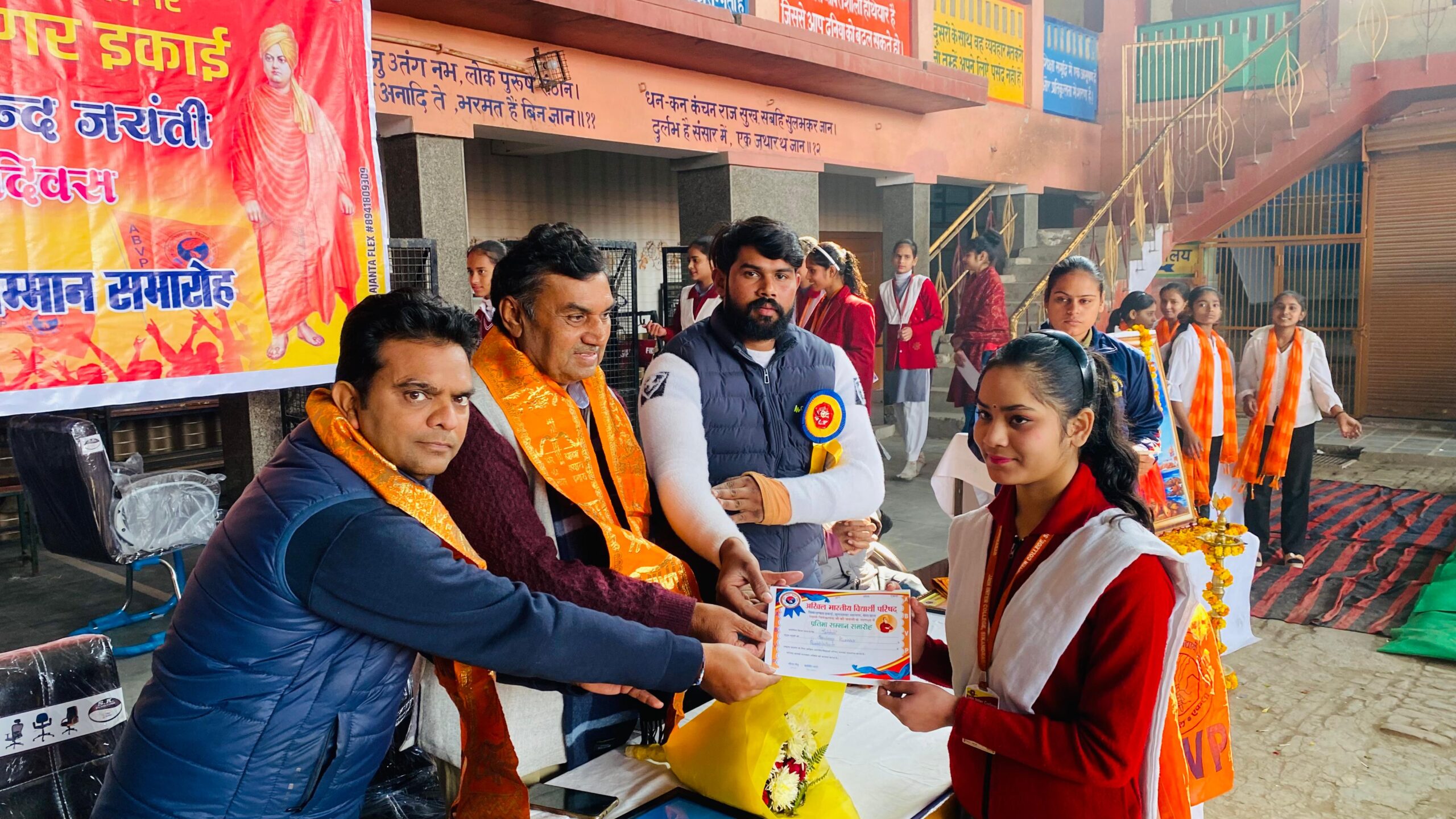 इस अवसर पर विभाग संगठन मंत्री कमल, जैन इंटर कॉलेज के प्रधानाचार्य सुधीर सोलंकी, सतवीर यादव, प्रभात, नीरज, देवेंद्र, प्रदेश कार्यकारिणी सदस्य प्रिया, तहसील संयोजक तनिष्क माधरे, प्रदीप बैसोया, नगर मंत्री प्रियंका, नगर सह छात्रा प्रमुख माही सहित दीपु, गोरी, गुलशन, मोहन सैनी और भाजपा सहित अन्य संगठनों के कार्यकर्ता मौजूद रहे।