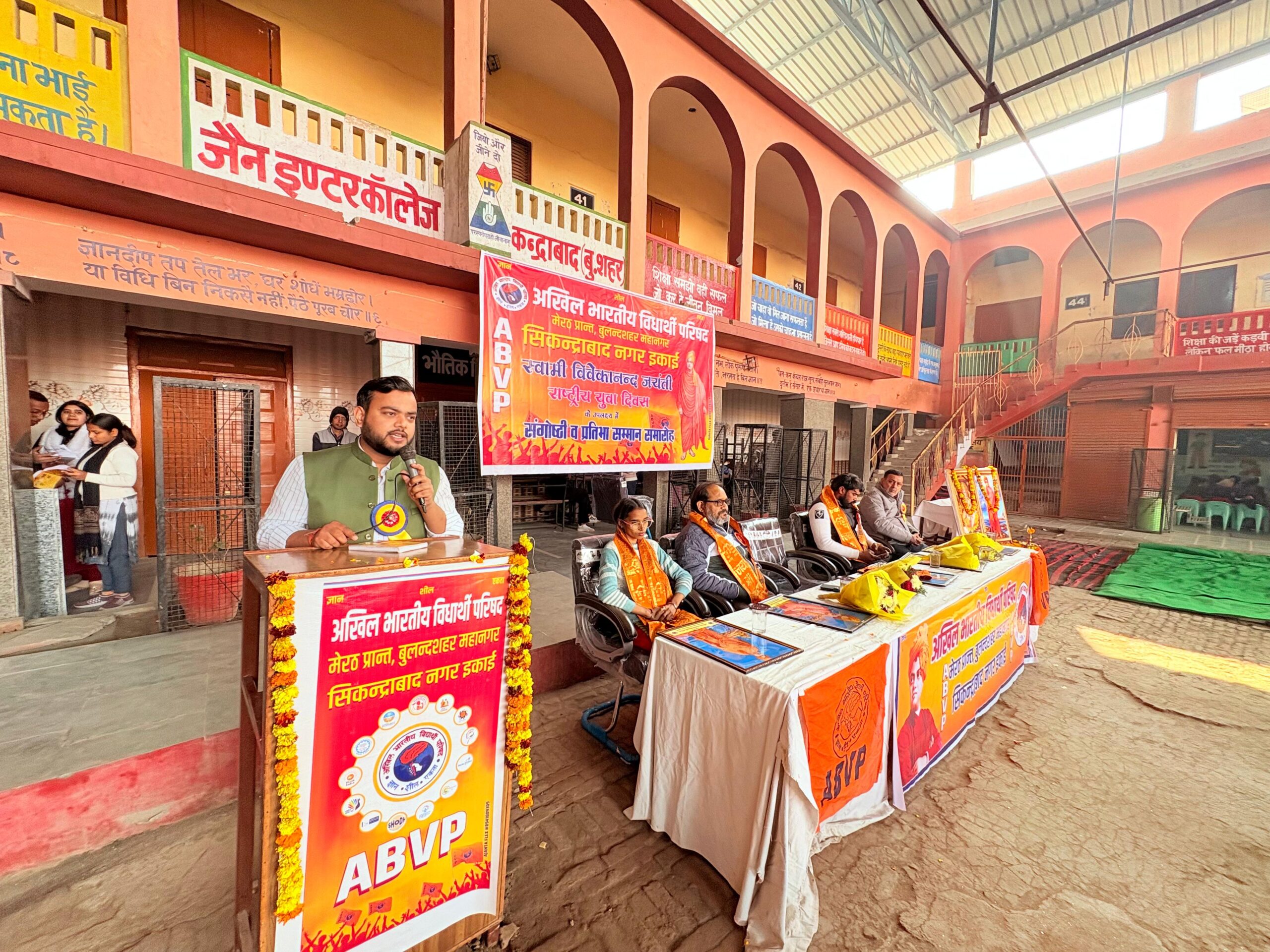 कार्यक्रम के मुख्य अतिथि भाजपा नगर अध्यक्ष त्रिवेश गुप्ता थे, जबकि सिकंदराबाद चेयरमैन प्रदीप दीक्षित और देवेंद्र सोलंकी विशिष्ट अतिथि के रूप में उपस्थित रहे। एबीवीपी मेरठ प्रांत के प्रांत मंत्री गौरव गौड़ ने मुख्य वक्ता के रूप में संबोधित किया।