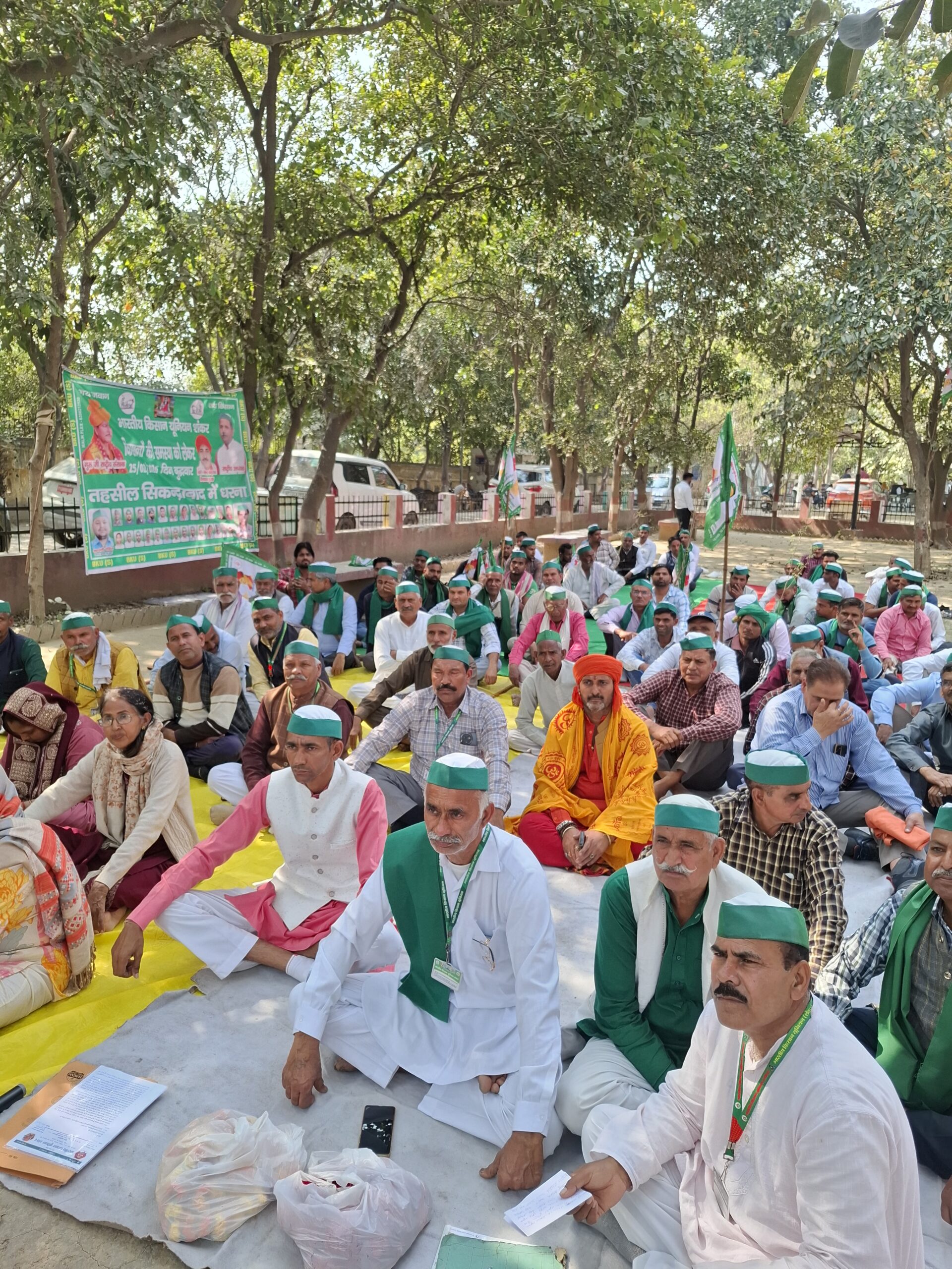 धरने में जिलाध्यक्ष नरेंद्र अधाना, मीडिया प्रभारी रविंद्र कुमार, विशाल, राजेश, इकराम, दिनेश, ईशान, राहुल, नौशाद, गजेंद्र, इमरान, अश्वनी सहित अन्य किसान मौजूद रहे।