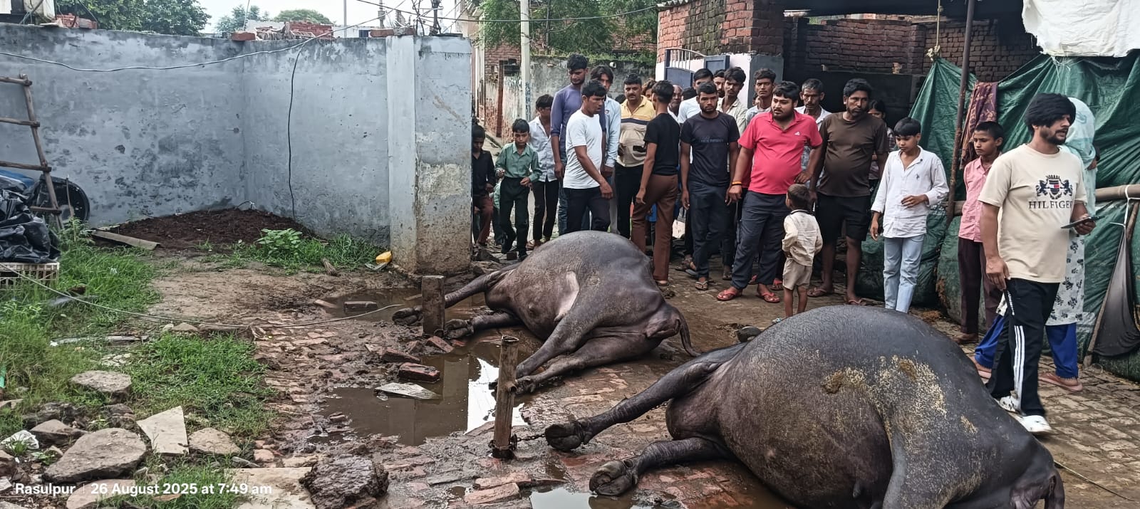 गुलावठी: हाईटेंशन तार गिरने से दो भैंसों की मौत, ग्रामीणों में रोष