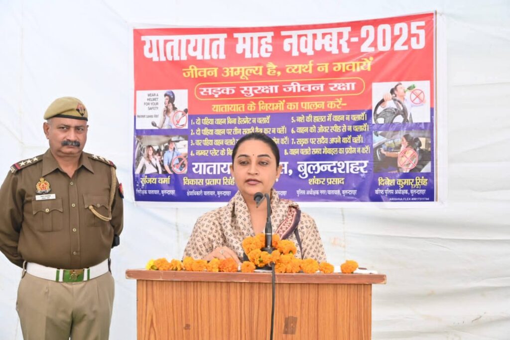बुलंदशहर में डीएम श्रुति और एसएसपी दिनेश कुमार सिंह ने यातायात माह का हरी झंडी दिखाकर शुभारंभ किया। सड़क सुरक्षा और यातायात नियमों के पालन को लेकर जागरूकता अभियान शुरू किया गया।