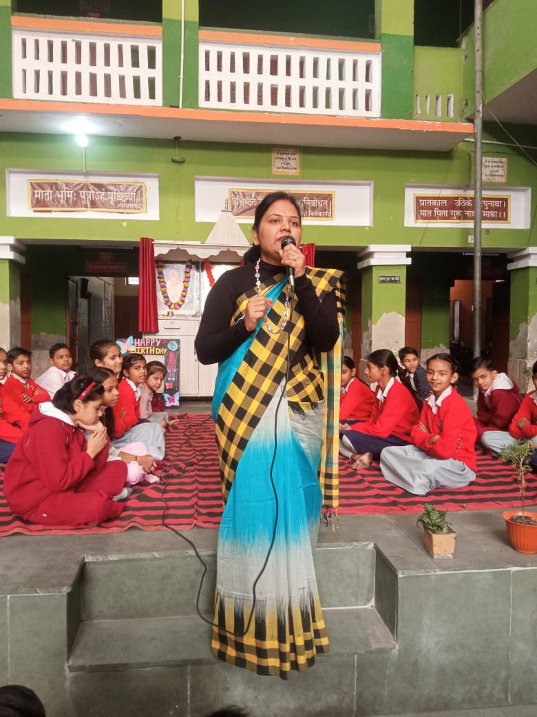 कार्यक्रम की शुरुआत वंदना सत्र के साथ हुई, जहां विद्यालय की प्रधानाचार्य एकता माहेश्वरी ने बच्चों को “संगठन में शक्ति है” विषय पर प्रेरक कहानी सुनाई। उन्होंने सामूहिकता, अनुशासन और सहयोग के महत्व को सरल उदाहरणों के माध्यम से समझाया