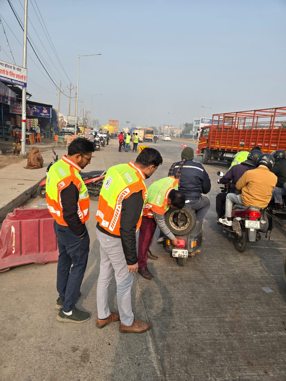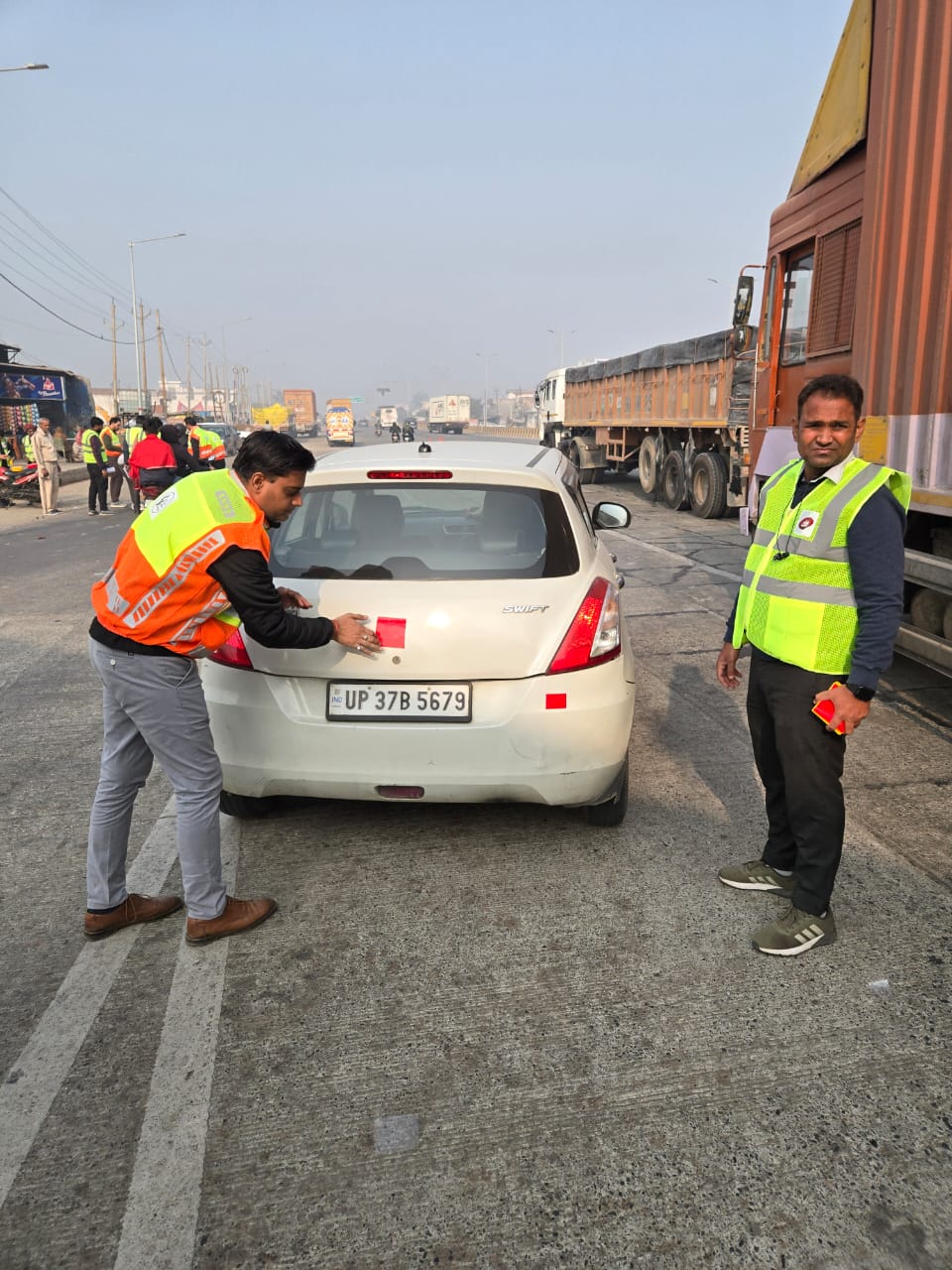 अभियान के दौरान टोल प्लाजा पर आने वाले वाहन चालकों को कोहरे में सुरक्षित ड्राइविंग के प्रति जागरूक किया गया। साथ ही वाहनों के पीछे रेट्रो-रिफ्लेक्टिव टेप/स्टिकर लगाए गए, जिससे कम दृश्यता की स्थिति में वाहनों की पहचान आसानी से हो सके।