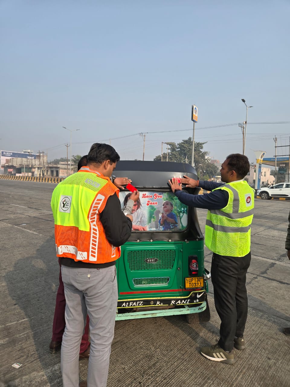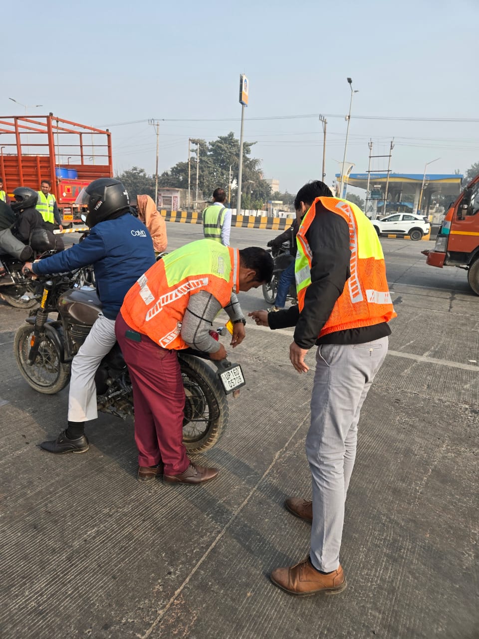 अभियान के दौरान टोल प्लाजा पर आने वाले वाहन चालकों को कोहरे में सुरक्षित ड्राइविंग के प्रति जागरूक किया गया। साथ ही वाहनों के पीछे रेट्रो-रिफ्लेक्टिव टेप/स्टिकर लगाए गए, जिससे कम दृश्यता की स्थिति में वाहनों की पहचान आसानी से हो सके।