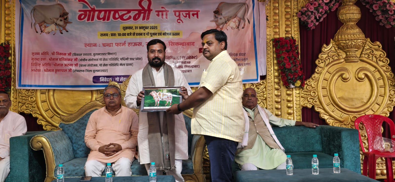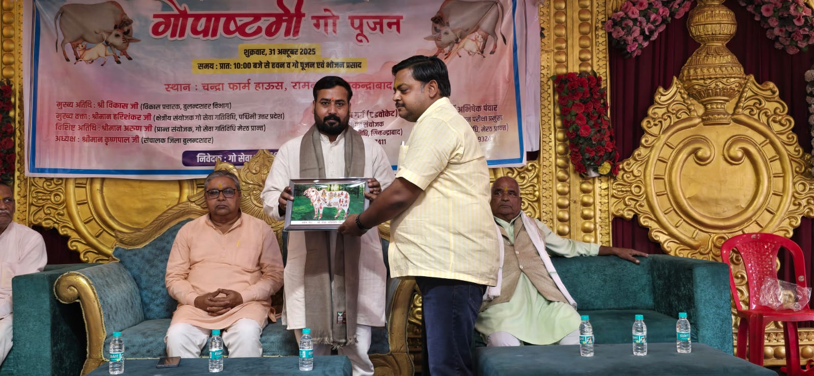 कार्यक्रम के मुख्य अतिथि विकास विभाग प्रचारक बुलंदशहर रहे, जबकि मुख्य वक्ता हरि शंकर (क्षेत्रीय संयोजक, गौ सेवा गतिविधि, पश्चिमी उत्तर प्रदेश) ने गौ-संवर्धन एवं संरक्षण पर अपने विचार रखे। उन्होंने बताया कि परखम (मथुरा) में गो अनुसंधान एवं प्रशिक्षण केंद्र स्थापित किया गया है, जहां गाय के उत्पादों से अनेक प्रकार की औषधियों का निर्माण किया जाएगा।