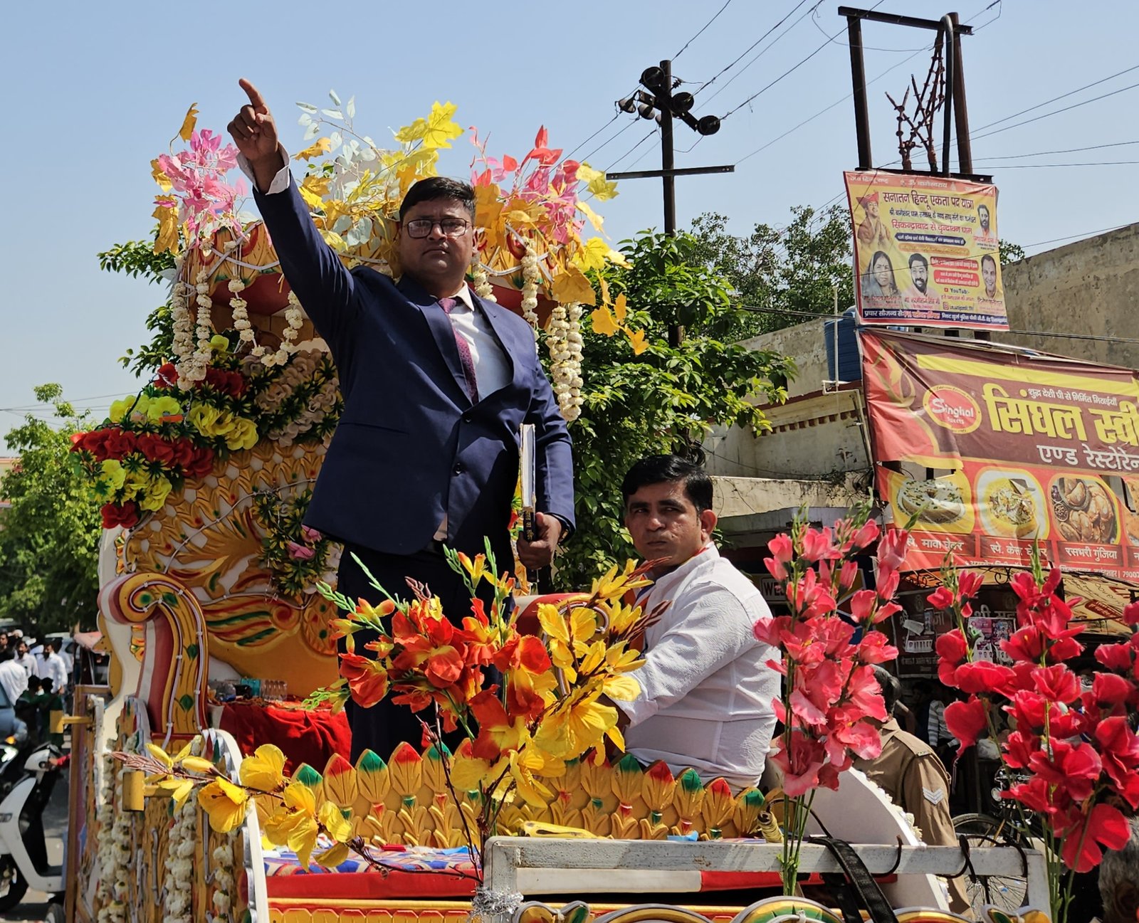 शोभायात्रा का शुभारंभ गजराज नागर, अजय पिपिल और सचिन सिंह ने फीता काटकर किया। यह यात्रा जीटी रोड, दनकौर तिराहा, विजयद्वार, चौधरीवाड़ा, कसाईवाड़ा, लेवर चौक, बाजार माधोदास, दामोदर तिराहा, कबाड़ी बाजार, हनुमान चौक, बड़ा बाजार, सब्जी मंडी और आर्य समाज मंदिर होते हुए पुनः अंबेडकर पार्क पहुंचकर संपन्न हुई। समापन आर.के. गौतम द्वारा किया गया।