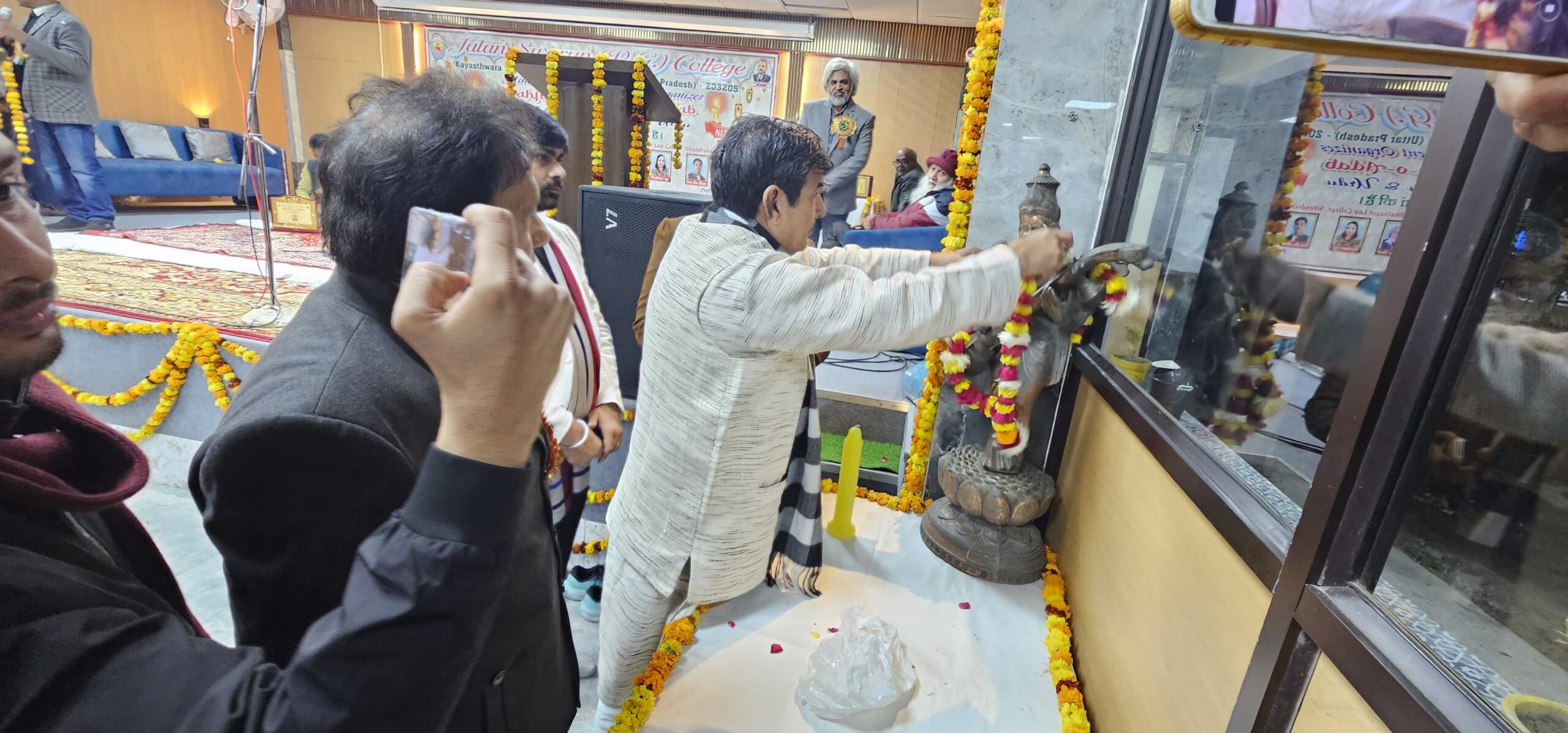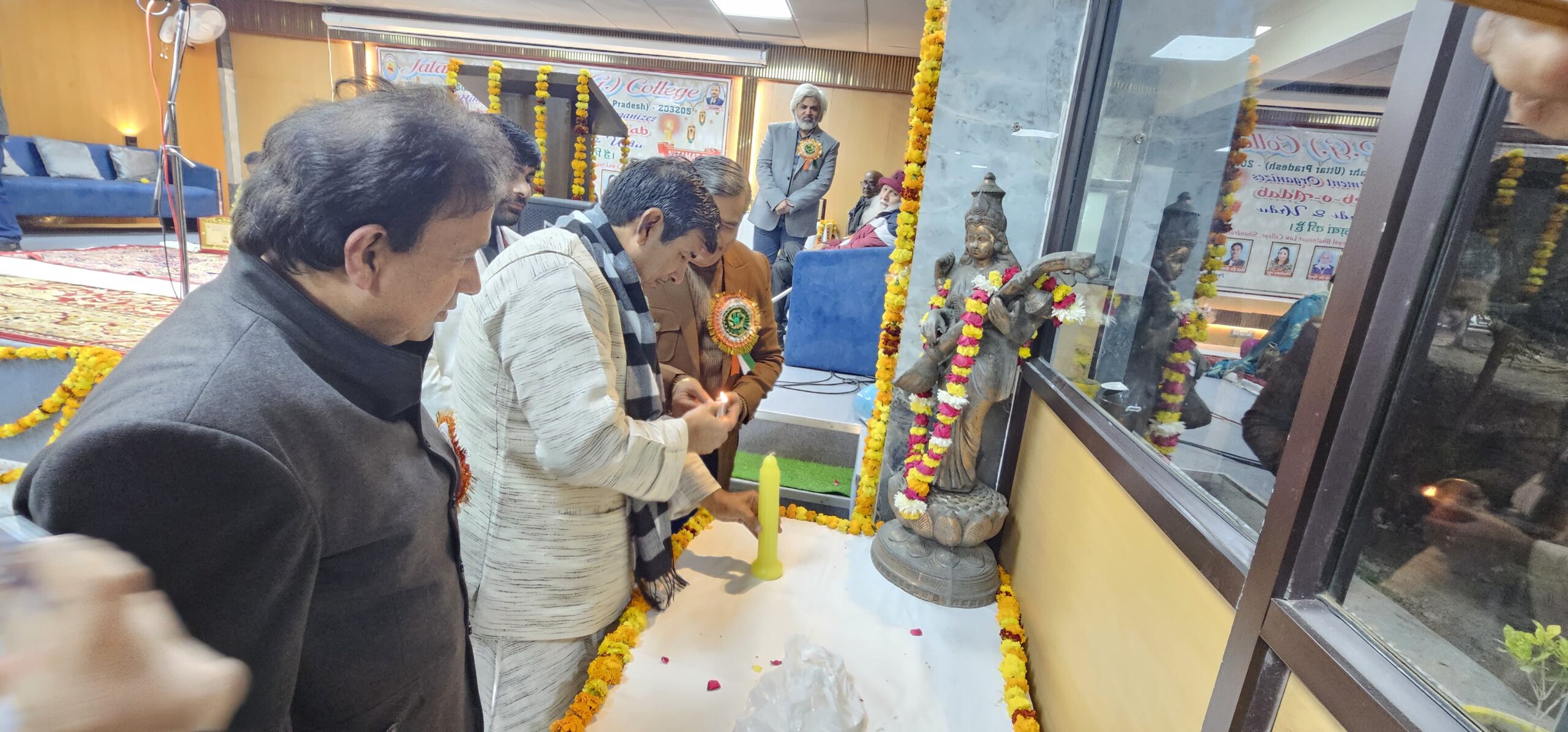कार्यक्रम का शुभारंभ मुख्य अतिथि एमएलसी श्रीचंद शर्मा, विशिष्ट अतिथि विधायक लक्ष्मीराज सिंह तथा नगर पालिका चेयरमैन डॉ. प्रदीप दीक्षित द्वारा दीप प्रज्वलन कर किया गया। इस अवसर पर कॉलेज प्रबंधन की ओर से प्रबंधक नितिन भटनागर ने सभी अतिथियों एवं कवियों का शाल व स्मृति चिन्ह भेंट कर स्वागत किया।