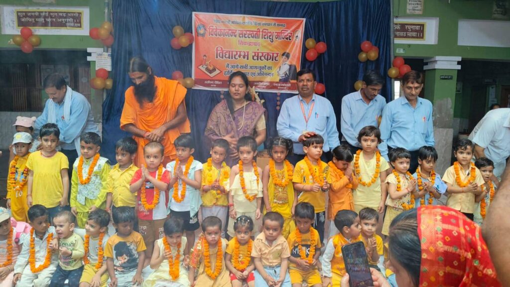 सिकंदराबाद। नगर के सरस्वती नगर स्थित विवेकानन्द सरस्वती शिशु मंदिर में नवीन प्रवेश शिशुओं का विद्यारंभ संस्कार कार्यक्रम हर्षोल्लास के साथ सम्पन्न हुआ। कार्यक्रम की शुरुआत विद्यालय से घोष के साथ प्रभातफेरी निकालकर की गई। जो ज्ञान लोक कॉलोनी से होते हुए पुनः विद्यालय परिसर में सम्पन्न हुई। प्रभातफेरी में आचार्यगण, अभिभावकगण और शिशु बड़ी संख्या में शामिल हुए।