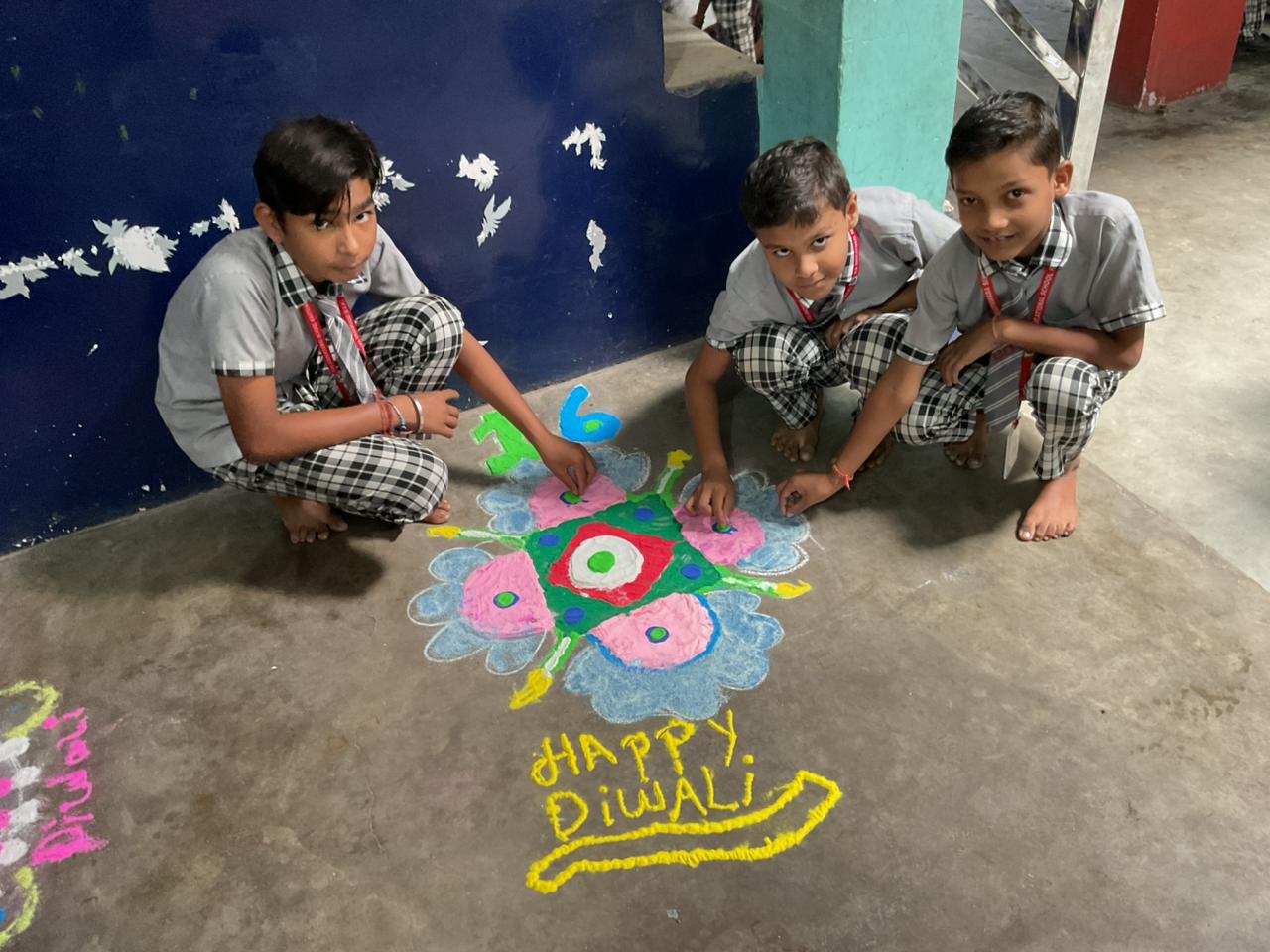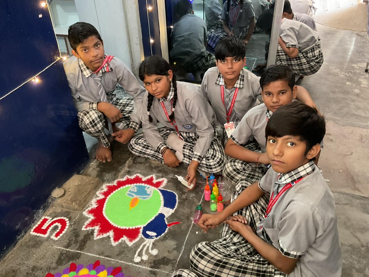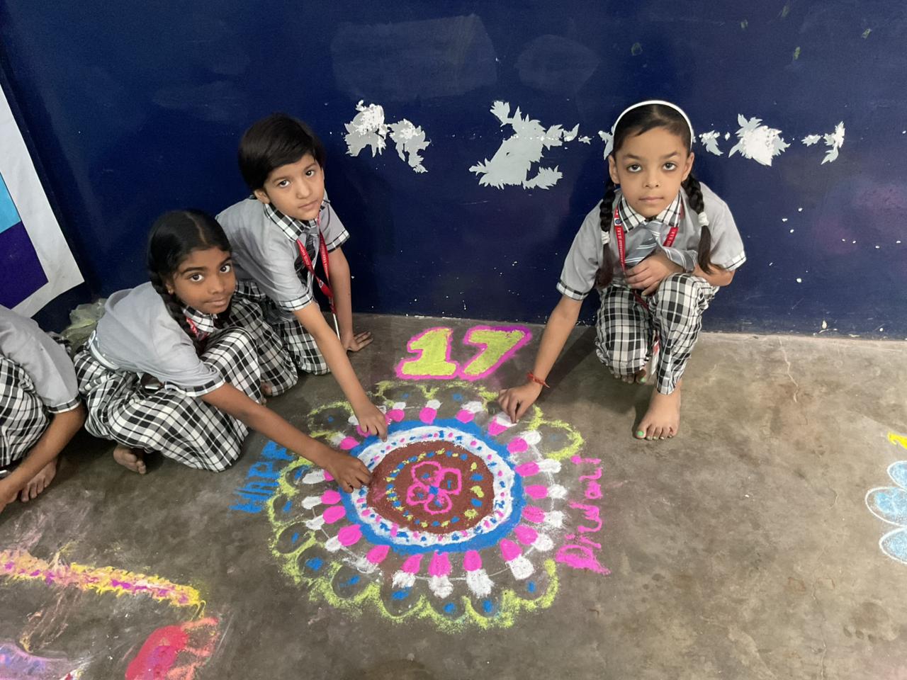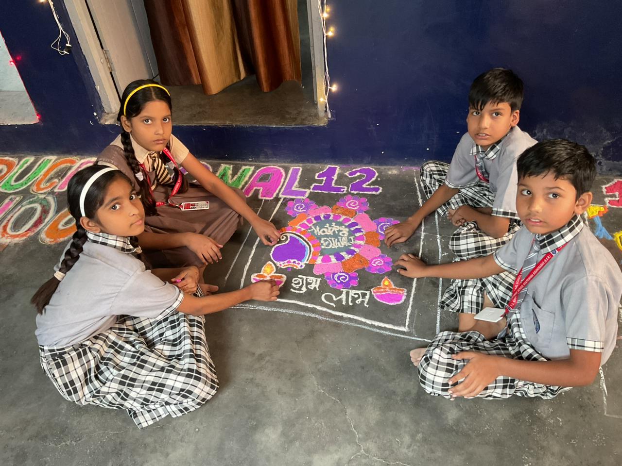 बच्चों ने विभिन्न विषयों पर सुंदर और आकर्षक रंगोलियाँ बनाकर सबका मन मोह लिया। प्रतियोगिता में विजेता छात्र-छात्राओं में —