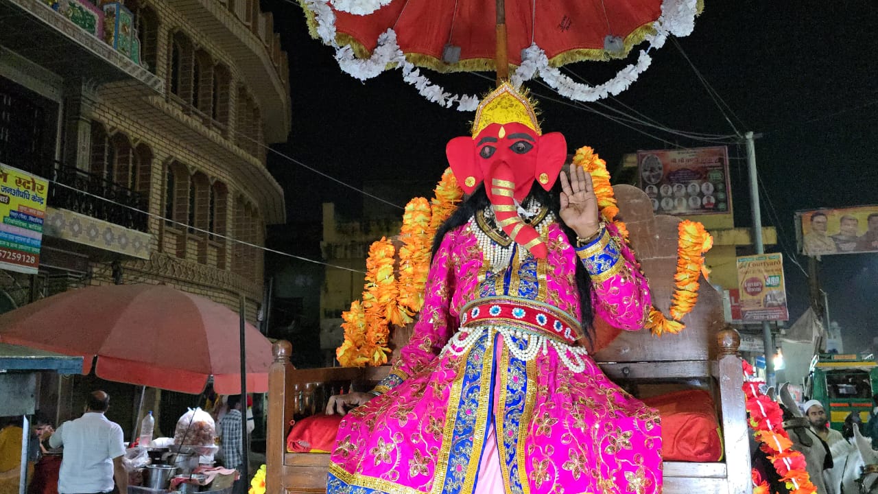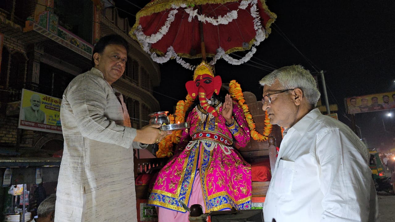 बग्गी में विराजमान भगवान श्री गणेश की आरती रामलीला कमेटी के सचिन शर्मा, अरविंद दीक्षित, राहुल गुप्ता, जगदीश बजाज, पिंकी वोहरा, राकेश मोहन सर्राफ, नितिन गर्ग एडवोकेट, विशाल चौधरी सहित समिति के अन्य सदस्यों ने की।