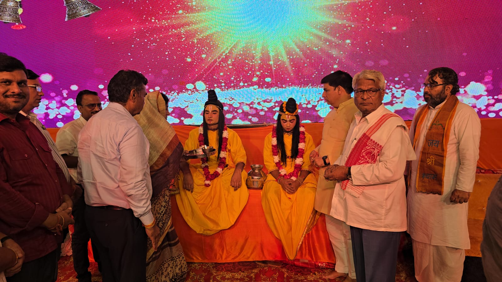 लीला का शुभारंभ पूर्व विधायक बिमला सोलंकी, देवेंद्र सोलंकी, धीरेंद्र प्रधान, अरविंद दीक्षित, सौरभ शर्मा, ओम नारायण शर्मा, मोहित अग्रवाल, राजीव राघव, मयंक शर्मा और राधेश्याम गोयल ने भगवान श्रीराम की आरती और तिलक के साथ किया।