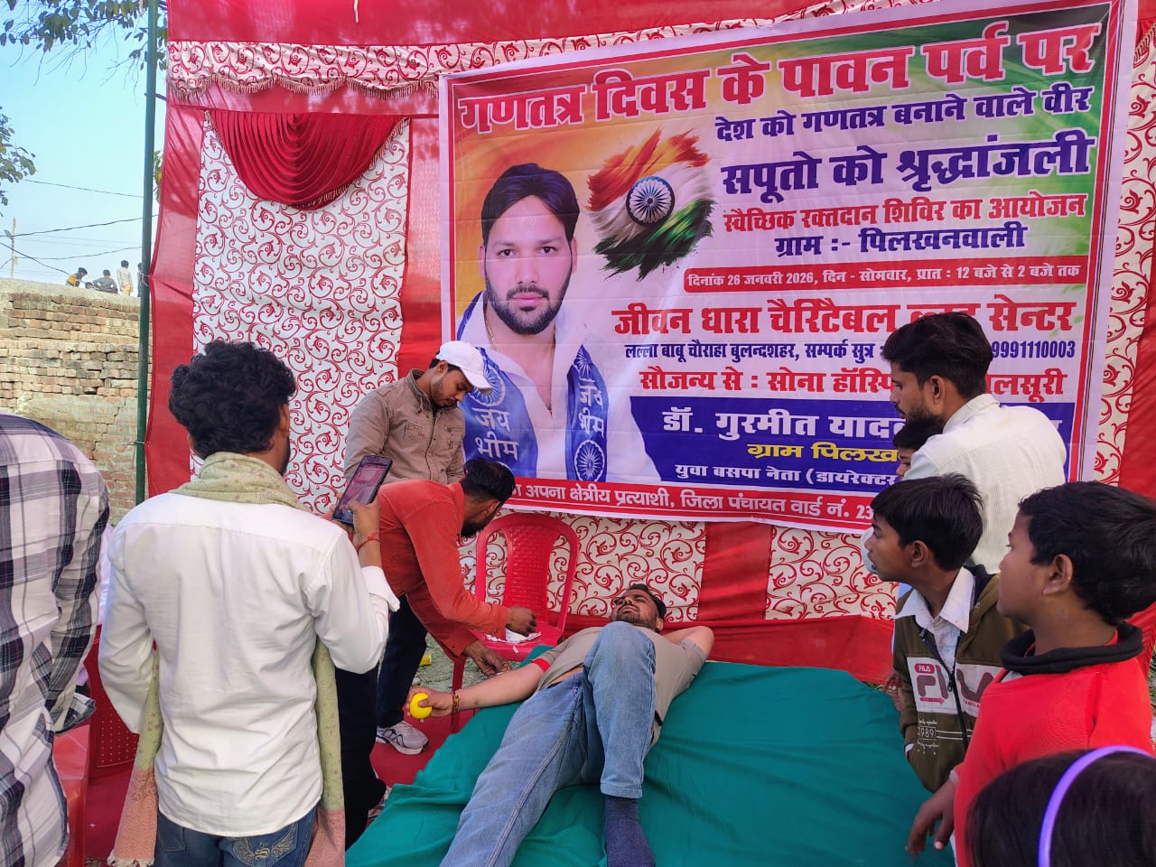 सिकंदराबाद: 77वें गणतंत्र दिवस के अवसर पर जीवन धारा चैरिटेबल ब्लड सेंटर, बुलंदशहर द्वारा सोना हॉस्पिटल के सौजन्य से गांव पिलखनवाली में स्वैच्छिक रक्तदान शिविर का आयोजन किया गया। शिविर का नेतृत्व डॉक्टर गुरमीत यादव उर्फ चिंटू ने किया।