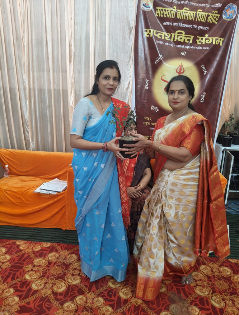 सरस्वती बालिका विद्या मंदिर सिकंदराबाद में आयोजित सप्तशक्ति संगम कार्यक्रम में मुख्य वक्ता रुचि सिंह ने कहा कि विद्यालय और परिवार का सेतु है मातृशक्ति। नारी अपने संस्कार और गुणों से समाज एवं राष्ट्र का विकास कर सकती है।
