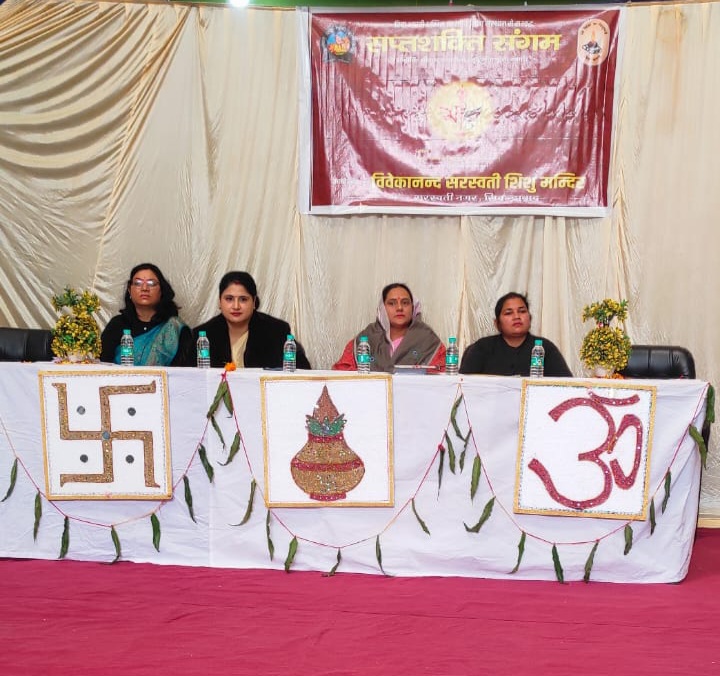 सिकंदराबाद: विद्या भारती अखिल भारतीय शिक्षा संस्थान द्वारा संचालित विवेकानंद सरस्वती शिशु मंदिर, होली मेला रोड सरस्वती नगर सिकंदराबाद में बुधवार को “सप्तशक्ति संगम” कार्यक्रम का भव्य आयोजन किया गया। भारतीय संस्कृति में महिलाओं को शक्ति, करुणा, प्रेम और समर्पण की दिव्य प्रतिमूर्ति माना जाता है। इसी भावना को जागृत करने और नारी के अंतःस्थित ज्ञान, शक्ति एवं नेतृत्व को उजागर करने के उद्देश्य से यह कार्यक्रम विद्या भारती महिला मंडल के संयुक्त तत्वाधान में सम्पन्न हुआ।