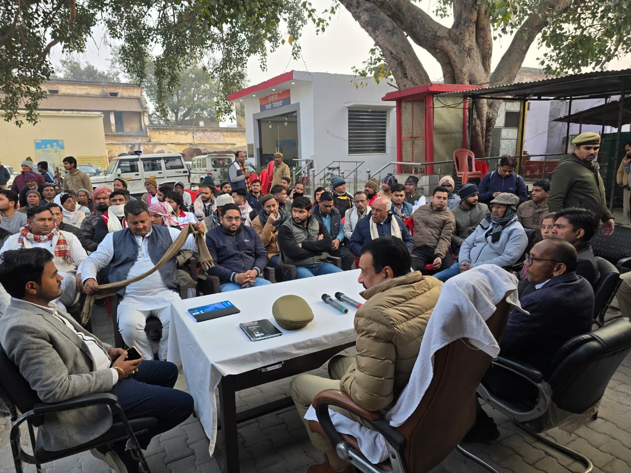 सिकंदराबाद: शुक्रवार शाम 5 बजे कोतवाली परिसर में नगर की विभिन्न समस्याओं को लेकर एक महत्वपूर्ण बैठक आयोजित की गई। बैठक की अध्यक्षता एसडीएम दीपक कुमार पाल ने की। इस दौरान नगर पालिका परिषद अध्यक्ष डॉ. प्रदीप दीक्षित, कार्यवाहक सीओ मधुप कुमार सिंह, कोतवाली प्रभारी अनिल कुमार शाही, अधिशासी अधिकारी शिवराज सिंह एवं विद्युत विभाग के एसडीओ रवि कुमार भी मौजूद रहे।