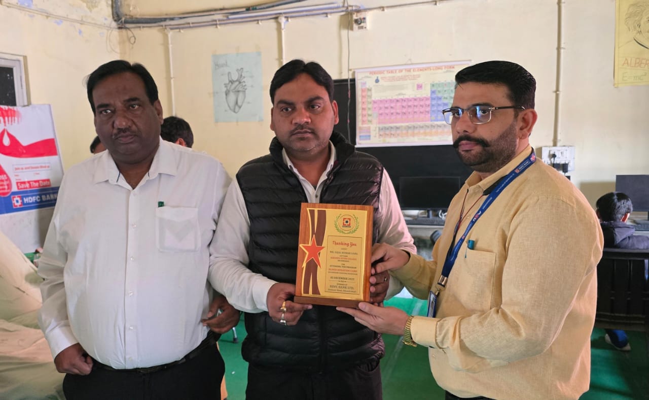 प्रिंसिपल दुर्गेश कुमार गर्ग ने रक्तदान को मानवता की सबसे बड़ी सेवा बताते हुए कहा—
