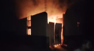 हाई टेंशन तार टूटने से गोदाम में लगी भीषण आग