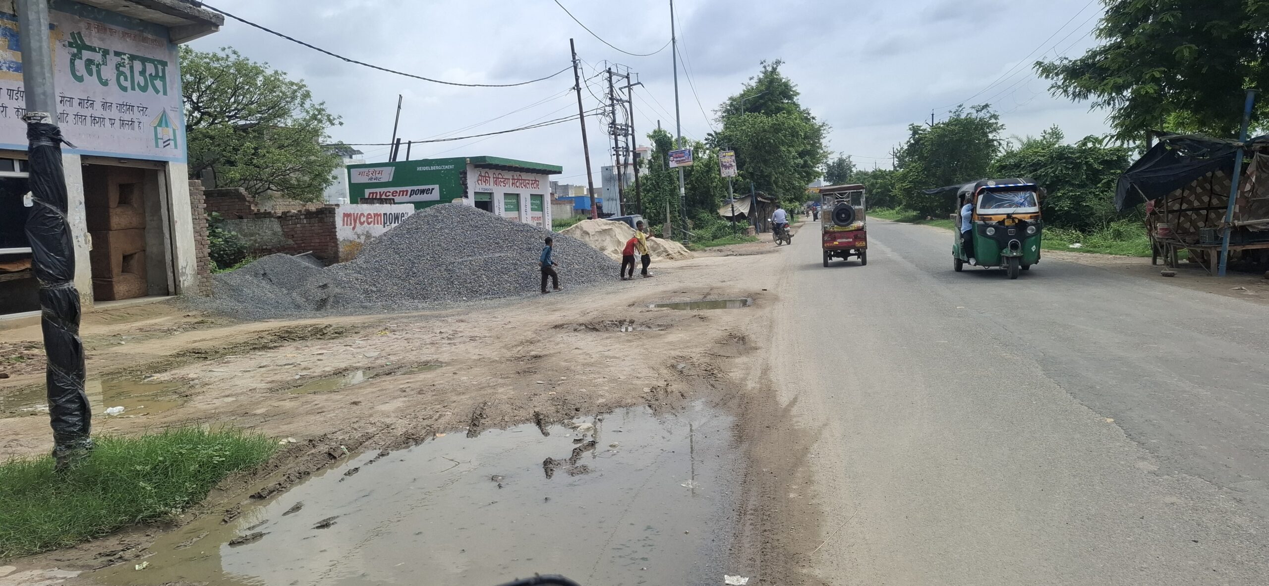 सड़क किनारे बिल्डिंग मटेरियल सप्लायर्स ने रोड़ी, बजरी व डस्ट के ढेर जमा कर रखे हैं। गर्मी व हवा के चलते उड़ती धूल से वायुप्रदूषण बढ़ रहा है, जिससे राहगीरों और आसपास के निवासियों को सांस की दिक्कतें होने लगी हैं।