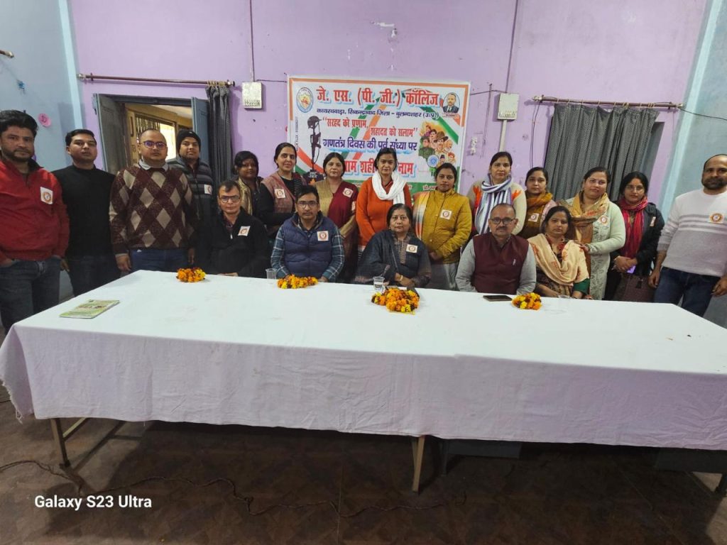 कार्यक्रम के अंत में सभी उपस्थित लोगों ने मोमबत्ती जलाकर और राष्ट्रगान गाकर शहीदों को श्रद्धांजलि अर्पित की। यह कार्यक्रम समाज में देशभक्ति और राष्ट्रीय एकता की भावना को सुदृढ़ करने का एक प्रेरणादायक प्रयास साबित हुआ। वही कॉलेज प्राचार्य के द्वारा मतदाता दिवस के अवसर पर सभी को मतदान करने के लिए प्रेरित किया और प्राचार्य सहित समस्त स्टाफ और छात्रो ने मतदान की शपथ ली। इस दौरान प्रो ग़ज़नफ़र उल्लाह, प्रो.कृपा शंकर यादव, प्रो.विनोद कुमार यादव,डॉ. आभा देवी,विकास कुमार, मयंक सक्सेना,गीता शेखावत, अंजलि सिंह,नवीन कुमार,निधि सारस्वत,श्वेता शर्मा सहित कॉलेज का समस्त स्टाफ मौजूद रहा।