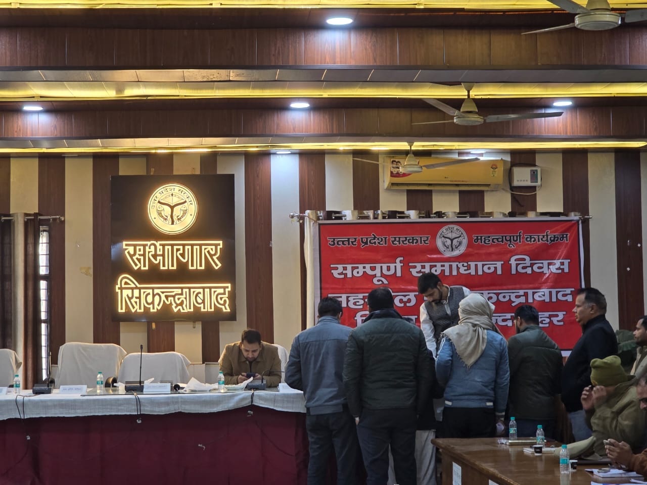 सिकंदराबाद: तहसील सभागार में माह के तीसरे शनिवार को एसडीएम दीपक कुमार पाल की अध्यक्षता में संपूर्ण समाधान दिवस का आयोजन किया गया। समाधान दिवस में विभिन्न गांवों और मोहल्लों से पहुंचे फरियादियों ने अपनी समस्याएं अधिकारियों के सामने रखीं। इस दौरान कुल 9 शिकायतें दर्ज की गईं, जिनमें से मौके पर केवल एक शिकायत का ही निस्तारण हो सका।