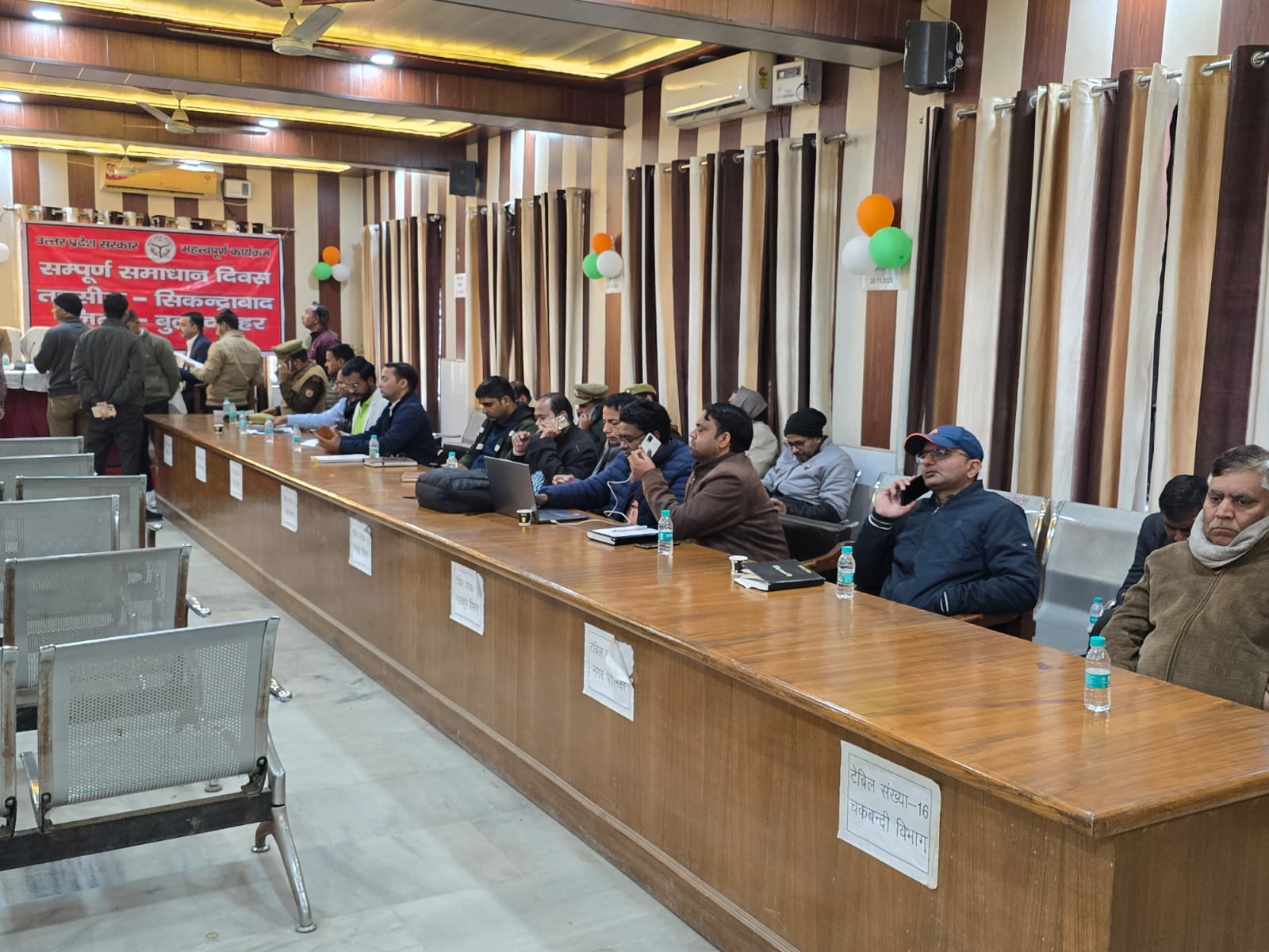 सिकंदराबाद: तहसील सभागार में माह के प्रथम शनिवार को संपूर्ण समाधान दिवस का आयोजन किया गया। कार्यक्रम की अध्यक्षता एडीएम फाइनेंस अभिषेक कुमार सिंह और एसपी सिटी शंकर प्रसाद ने की। समाधान दिवस में फरियादियों द्वारा कुल 11 शिकायतें दर्ज कराई गईं, जिनमें से मौके पर केवल 2 शिकायतों का ही निस्तारण हो सका।
