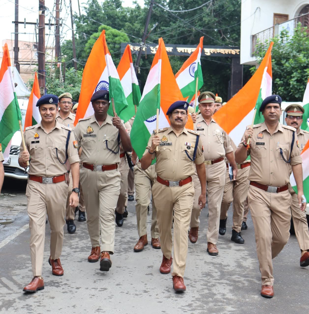 बुलन्दशहर में वरिष्ठ पुलिस अधीक्षक दिनेश कुमार सिंह के नेतृत्व में “हर घर तिरंगा” अभियान के तहत भव्य तिरंगा यात्रा निकाली गई। रैली में पुलिसकर्मियों ने राष्ट्रीय एकता और देशभक्ति का संदेश दिया।