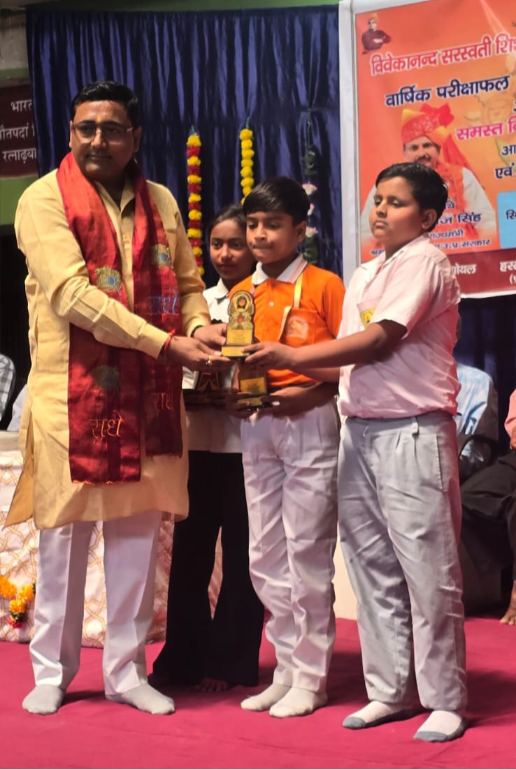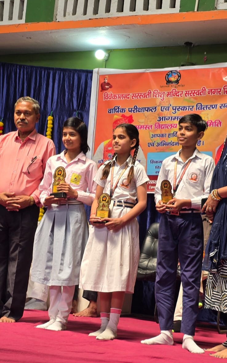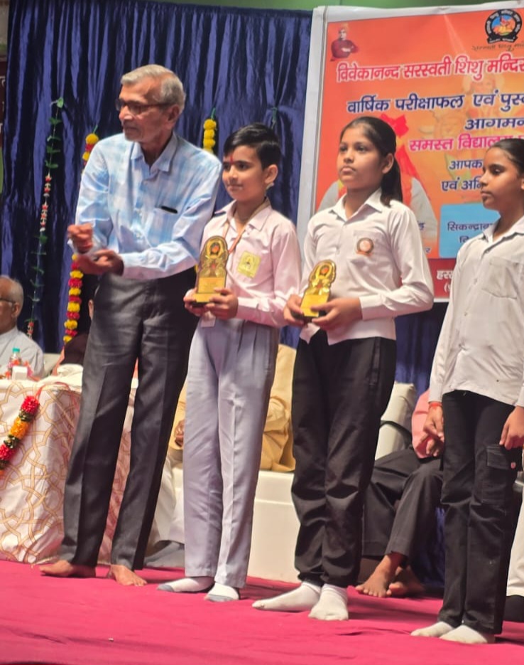 सिकंदराबाद: नगर के सरस्वती नगर स्थित विवेकानंद सरस्वती शिशु मंदिर में गुरुवार को वार्षिक परीक्षा परिणाम एवं पुरस्कार वितरण कार्यक्रम का आयोजन किया गया। कार्यक्रम में मेधावी छात्र-छात्राओं को सम्मानित किया गया।